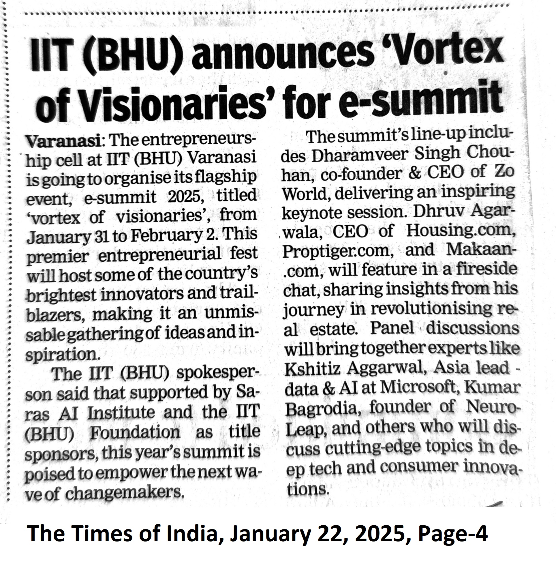 IIT(BHU) announces 'Vortex of Visionaries' for e-summit