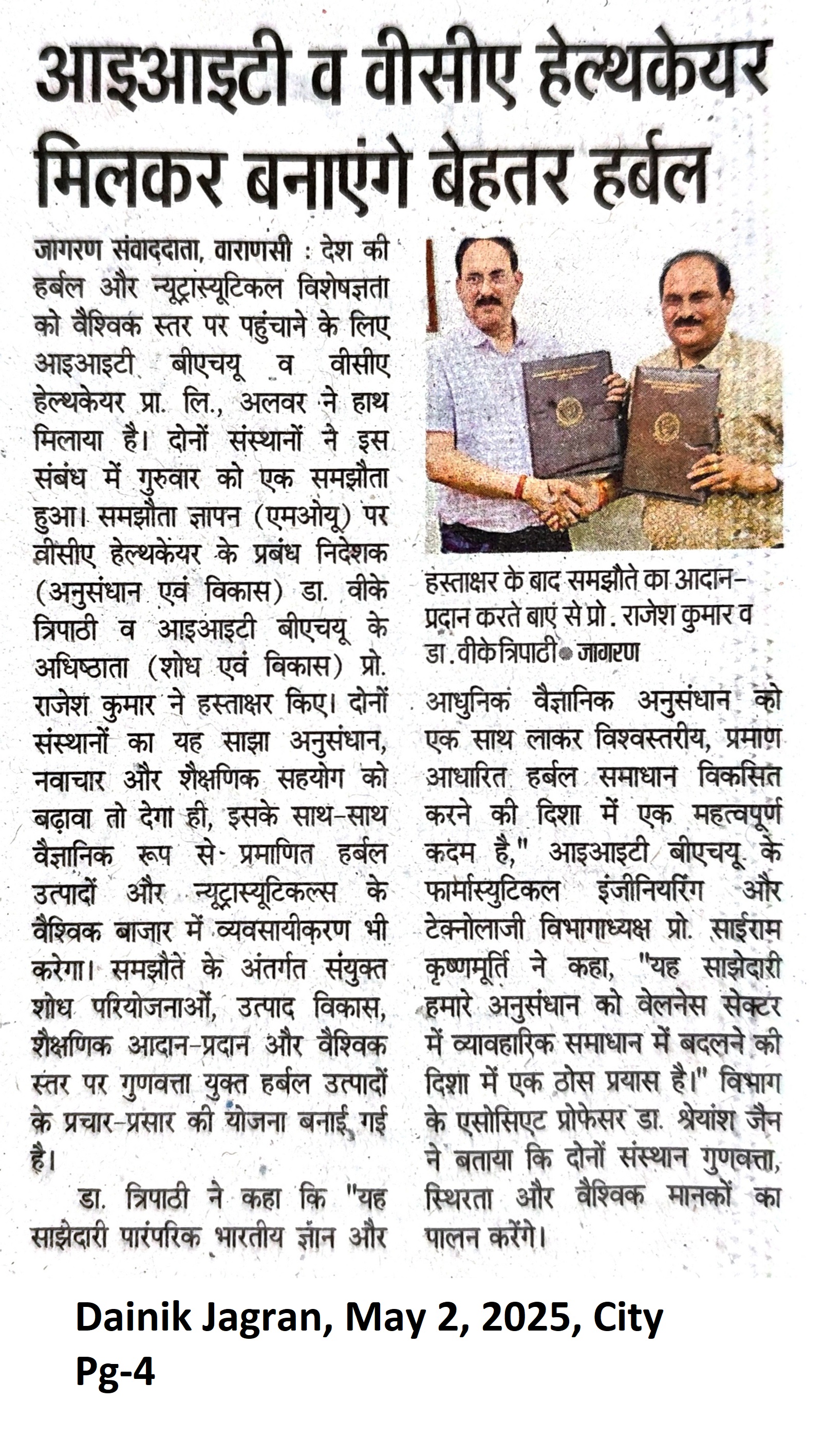 आईआईटी बीएचयू व वीसीए हेल्थकेयर मिलकर बनाएंगे बेहतर हर्बल