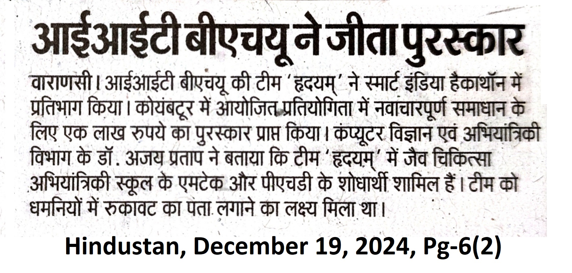 आईआईटी बीएचयू ने जीता पुरस्कार