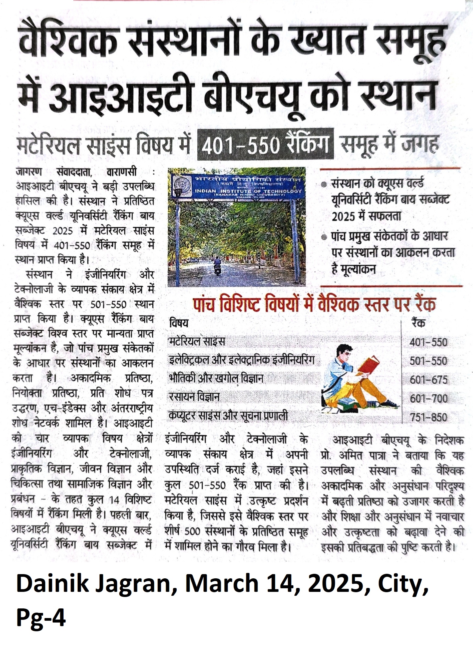 वैश्विक संस्थानों क ख्यात समूह में IIT BHU को स्थान