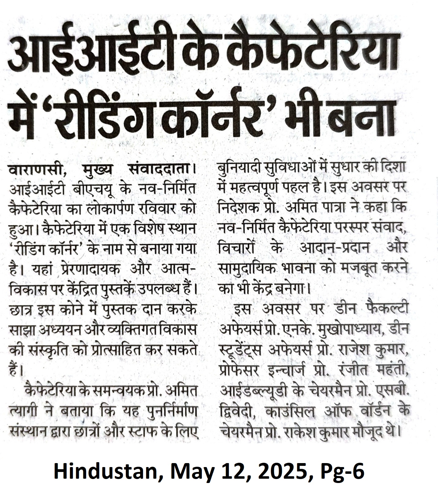 IIT-BHU Cafeteria 'Reading Corner'
