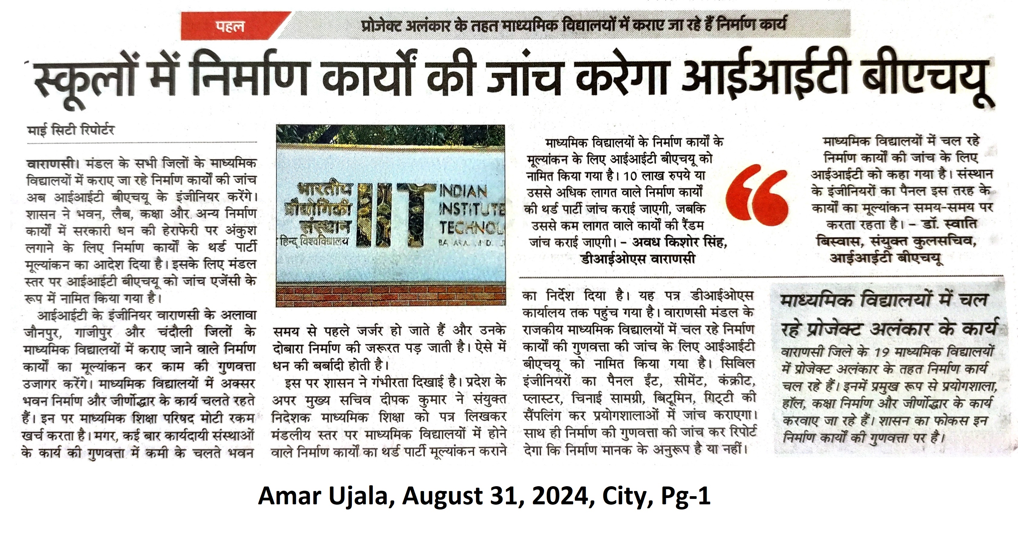 स्कूलों में निर्माण कार्य की जाँच करेगा आईआईटी बीएचयू