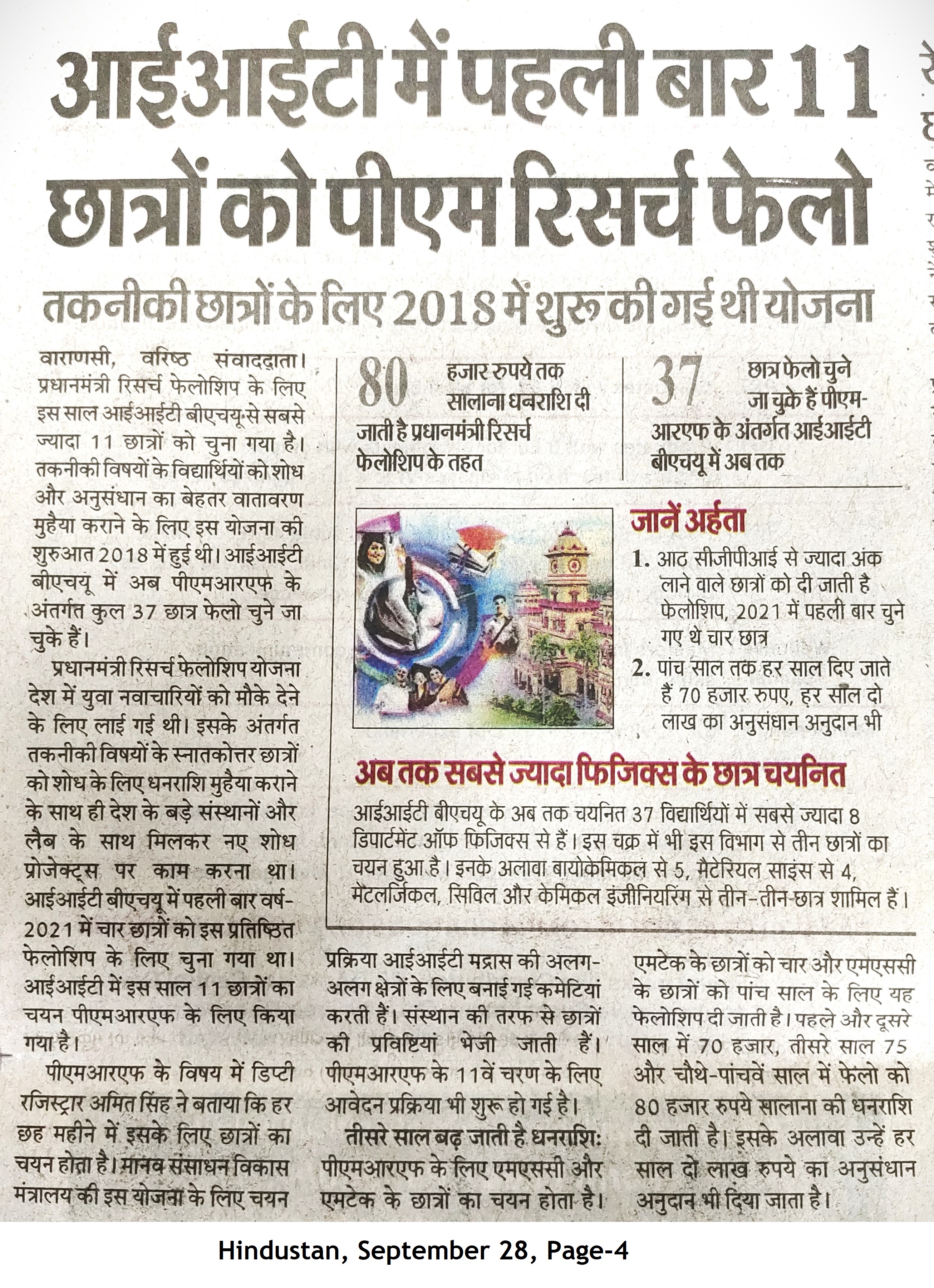 आईआईटी में पहली बार ११ छात्रों को पीएम रिसर्च फेलो