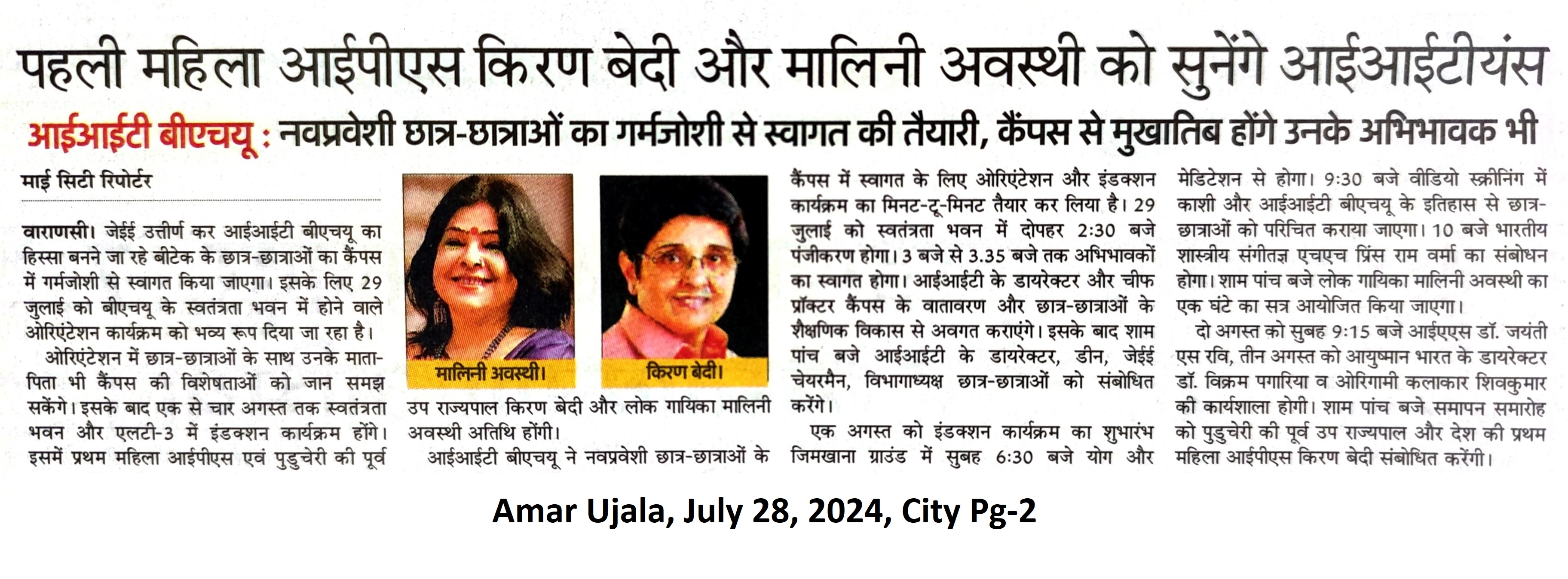 पहली महिला आईपीएस किरण बेदी और मालिनी अवस्थी को सुनेंगे आईआईटियंस