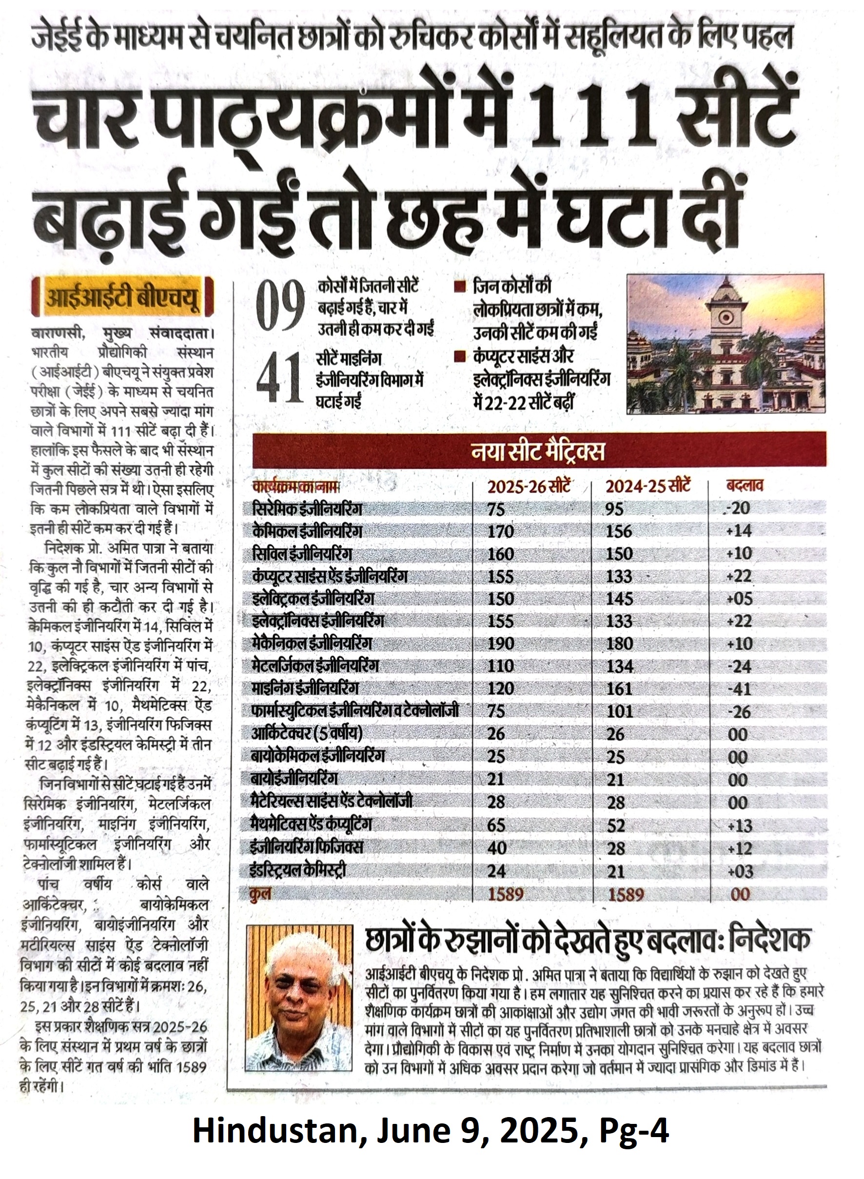 चार पाठ्यक्रमों में 111 सीटें बढ़ाई गयीं तो छेह में घटा दीं