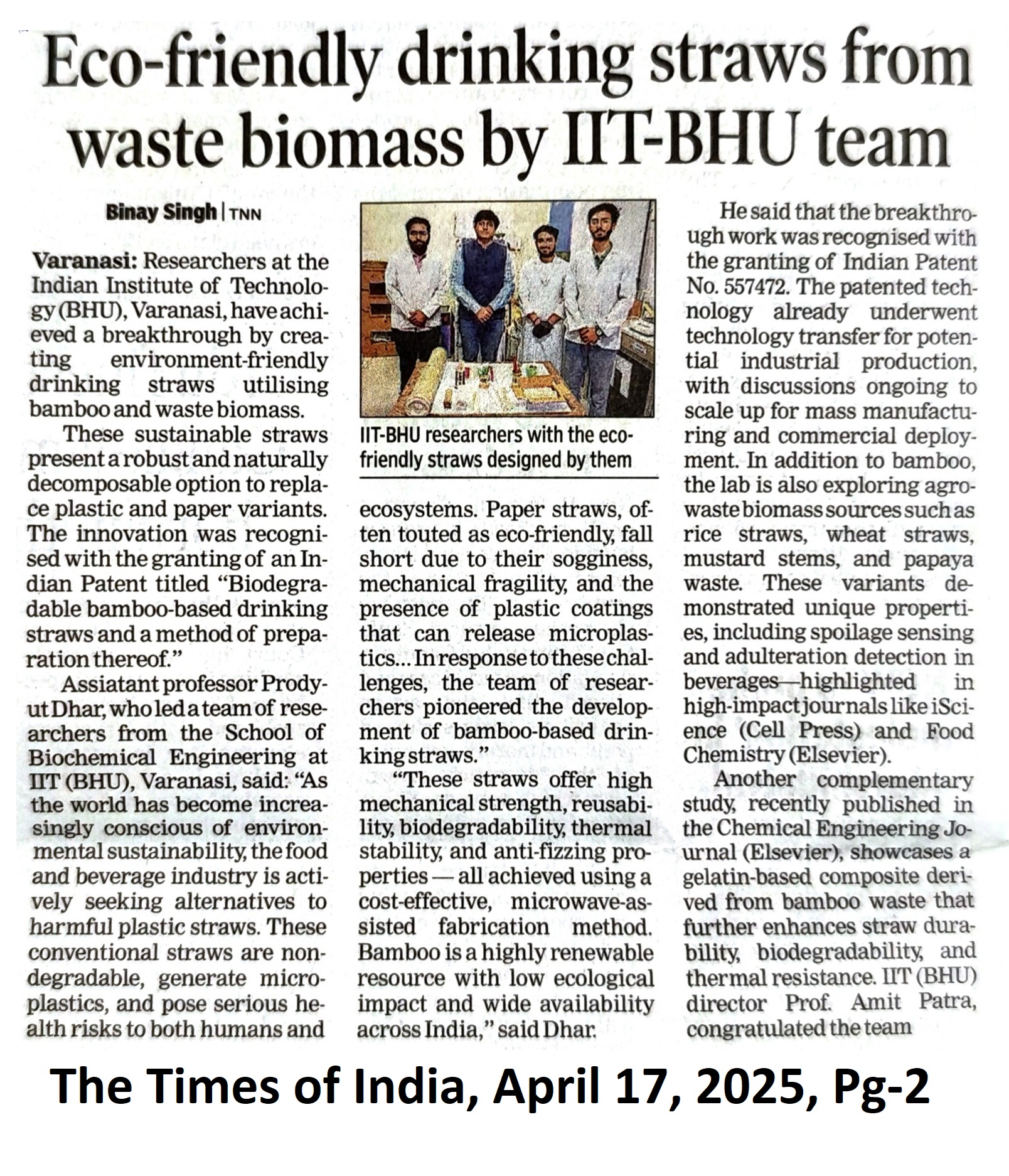 Eco-friendly drinking straws from waste biomass by IIT-BHU team
