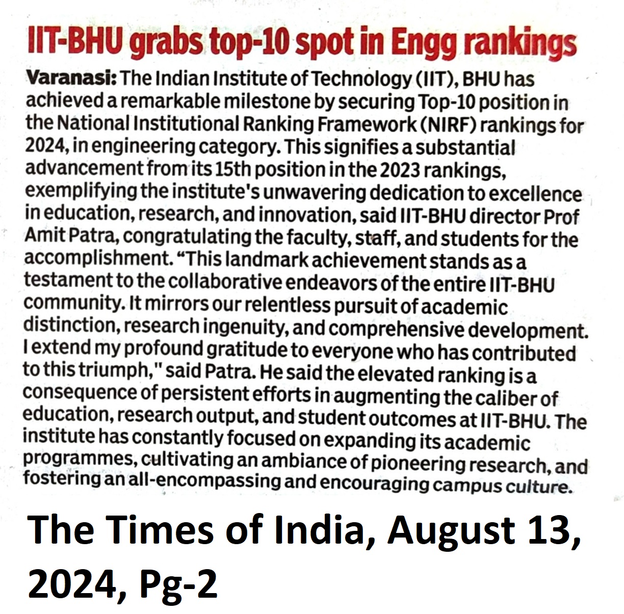 IIT-BHU grabs top-10 spot in Engg rankings