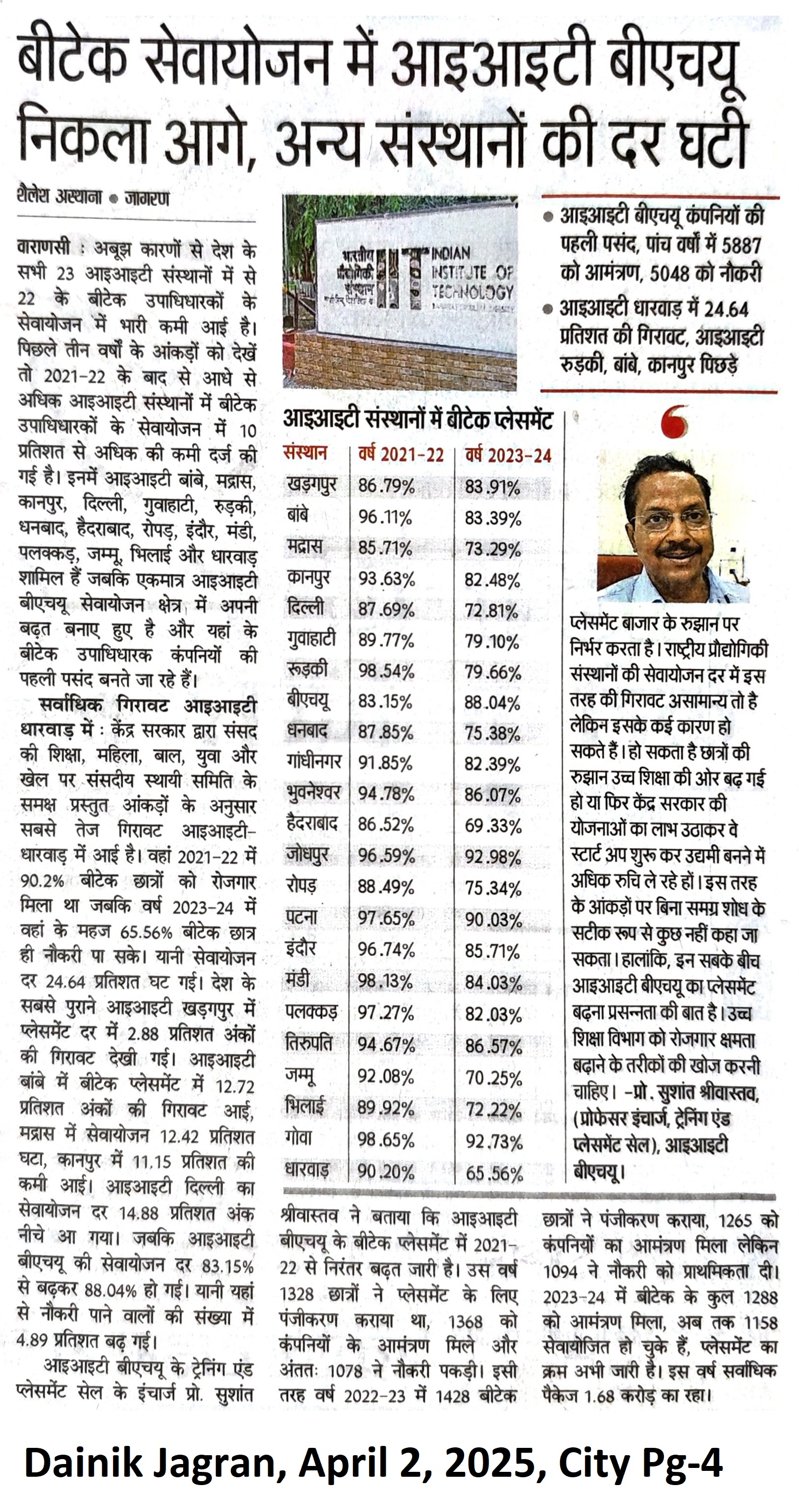 बीटेक सेवायोजन में आईआईटी बीएचयू निकला आगे, अन्य संस्थाओं की दर घटी