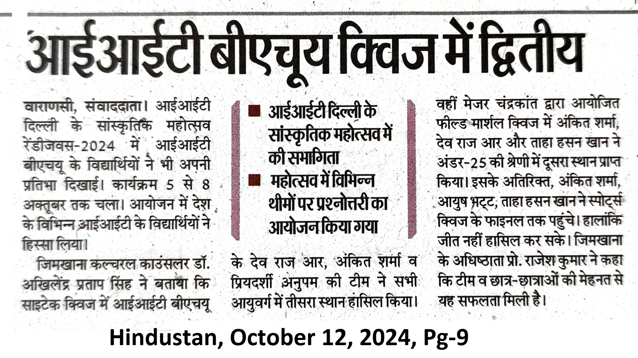 आईआईटी बीएचयू क्विज में द्वितीय