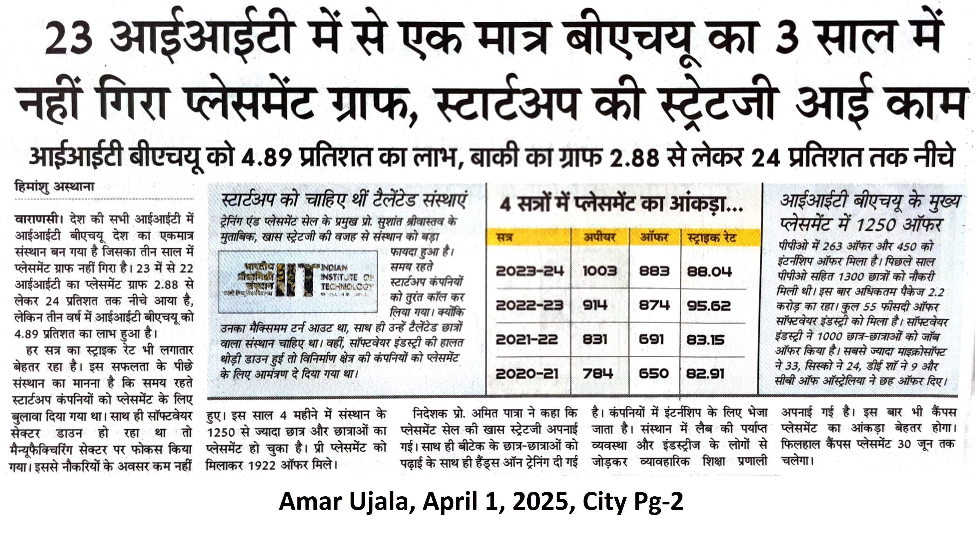 २३ आईआईटी में से एक मात्र बी.एच.यू का ३ साल में नहीं गिरा प्लसमेंट ग्राफ, स्टार्टअप की स्ट्रेटेजी आयी काम