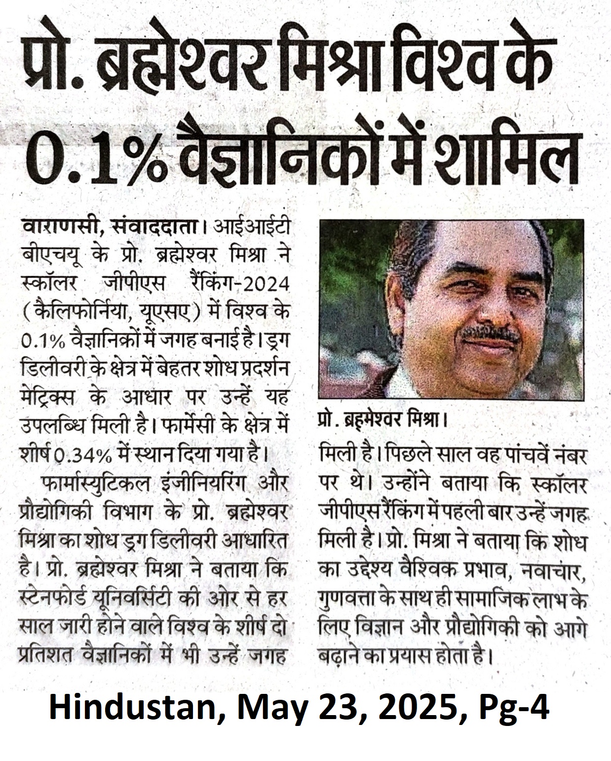 प्रो. ब्रम्हेश्वर मिश्रा विश्व के 0.1% वैज्ञानिको में शामिल