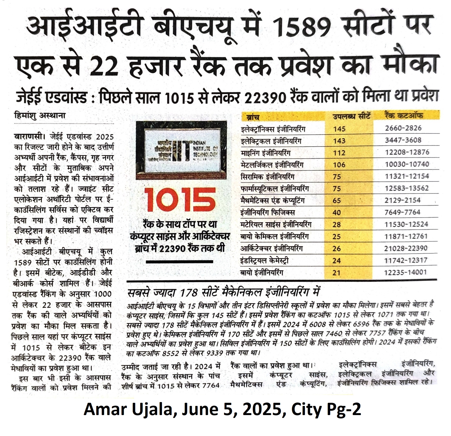 आईआईटी बीएचयू में 1589 सीटों पर एक से २२ हज़ार रैंक तक प्रवेश का मौका