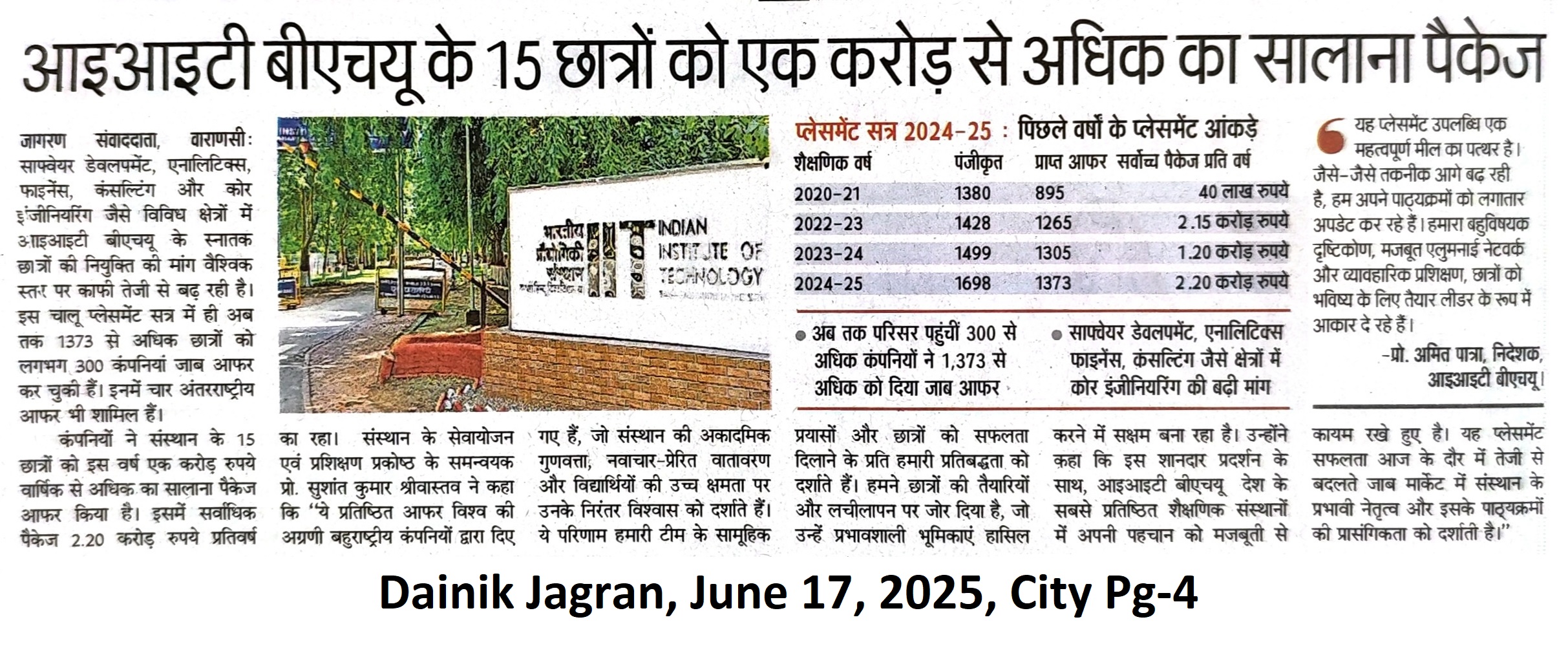 आईआईटी बीएचयू के 15 छात्रों को एक करोड़ से अधिक का सालाना पैकेज