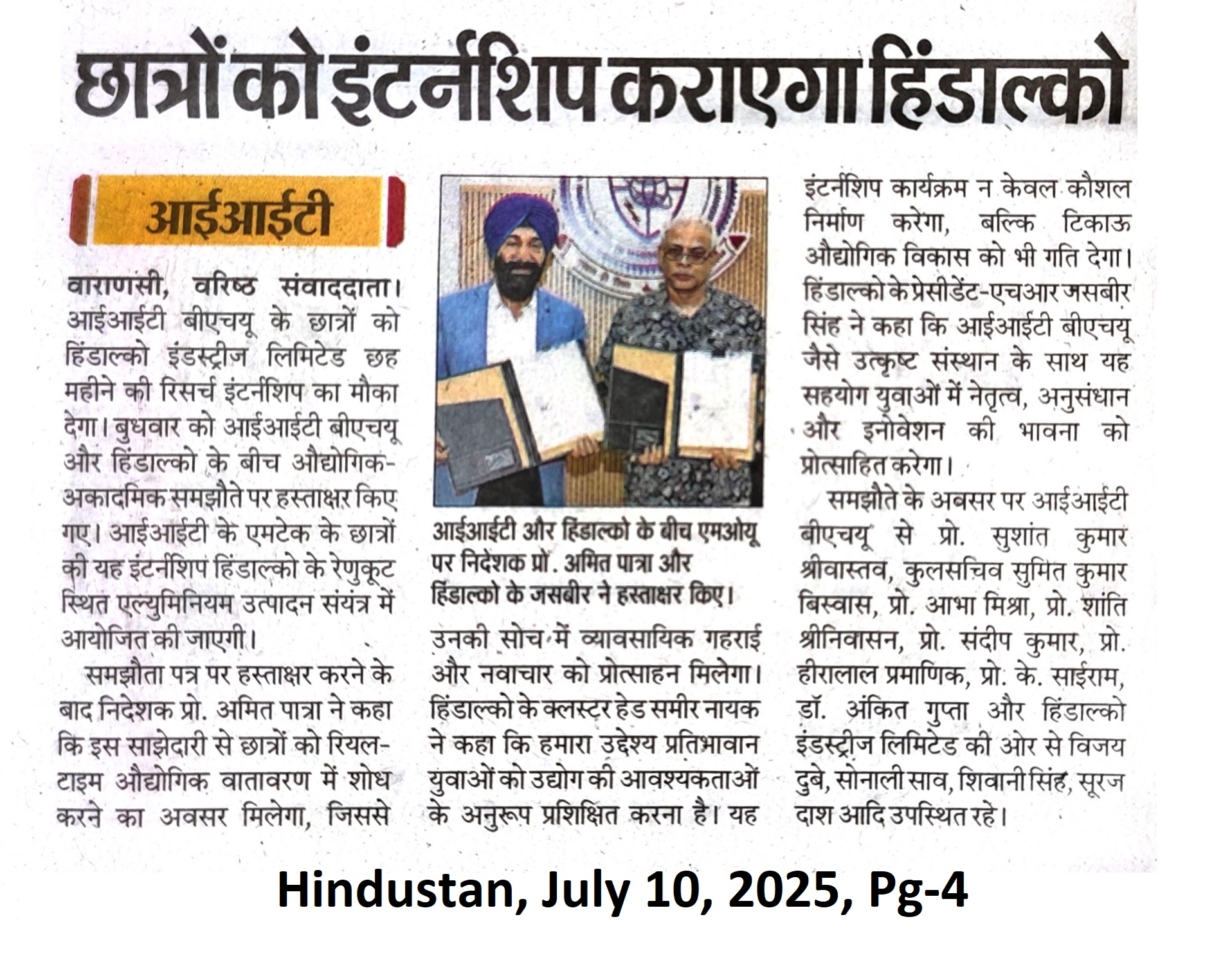 छात्रों को इंटर्नशिप कराएगा हिंडाल्को