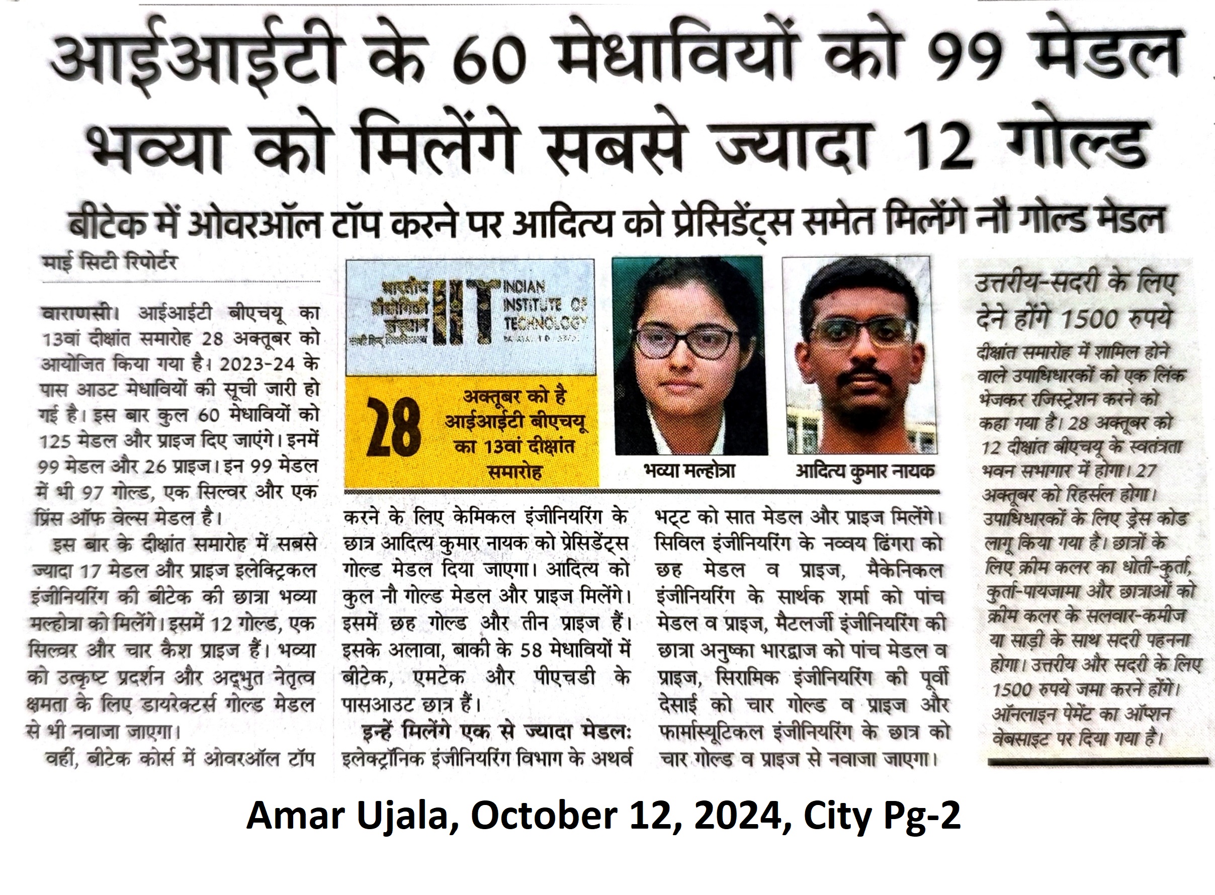 आईआईटी के 60 मेधावियों को 99 मैडल, भव्या को मिलेंगे सबसे ज्यादा 12 गोल्ड