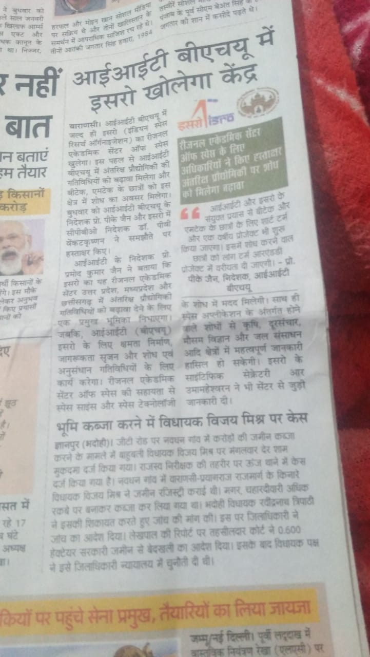 वाराणसी। आईआईटी बीएचयूम जल्द ही इसरो इंडियन स्पेस मोडक रिसर्च ऑर्गनाइजेशन) का रीजनल एकेडमिक सेंटर ऑफ स्पेसलताकेदमिक सहर खुलेगा। इस पहल से आईआईटी बीएचयू में अंतरिक्ष प्रौद्योगिकी का गतिविधियों को बढ़ावा मिलेगा और बीटेक, एमटेक के छात्रों को इस क्षेत्र में शोध का अवसर मिलेगा। को मिलेगा बढ़ावा