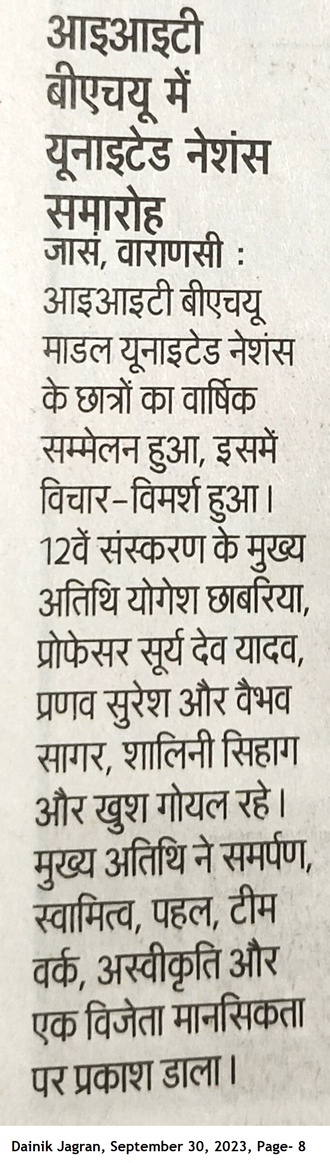 आईआईटी बीएचयू में यूनाइटेड नेशंस समारोह