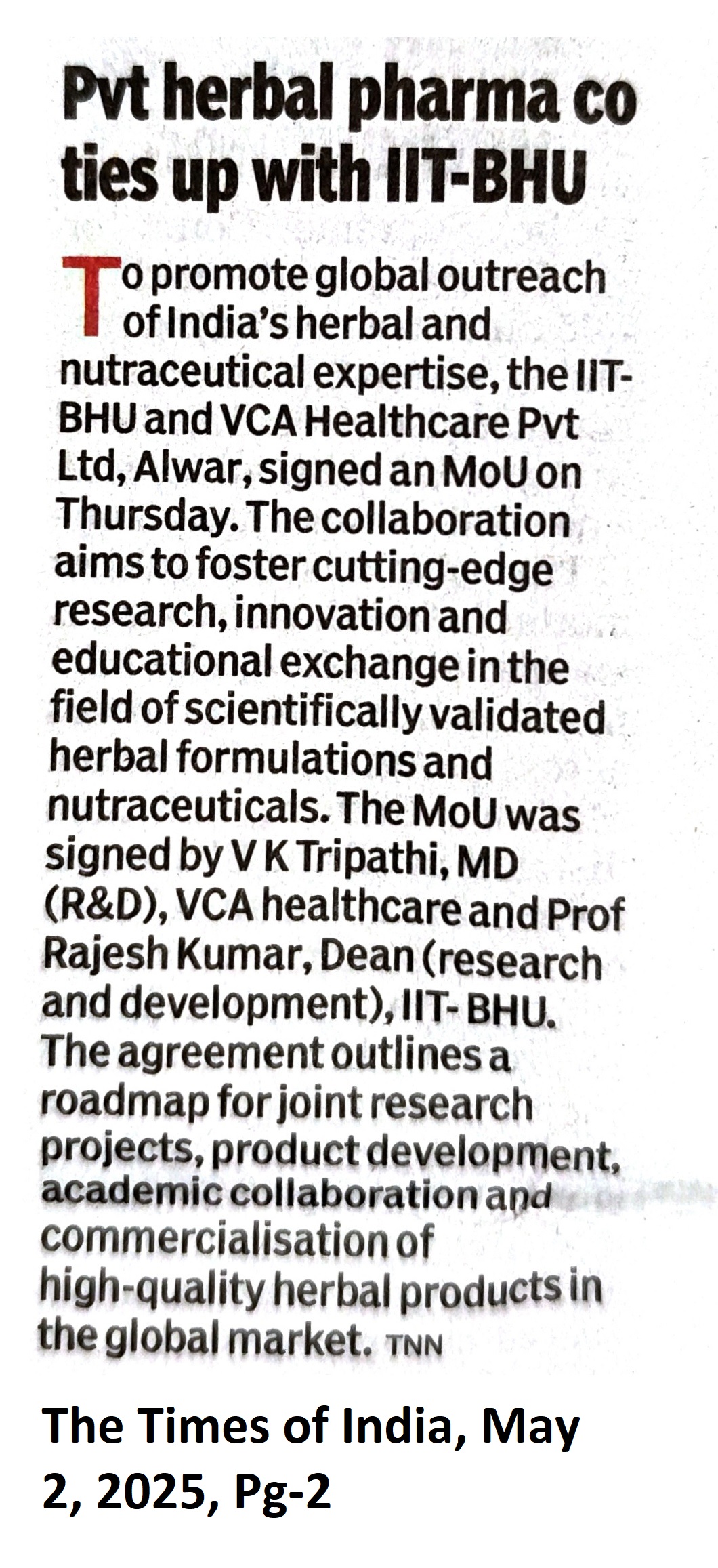 Pvt herbal pharma co ties up with IIT-BHU