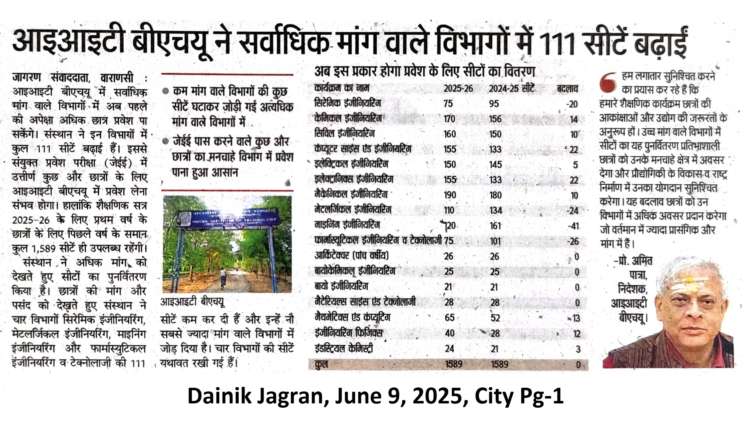 आईआईटी बीएचयू ने सर्वाधिक मांग वाले विभागों में 111 सीटें बढ़ाईं