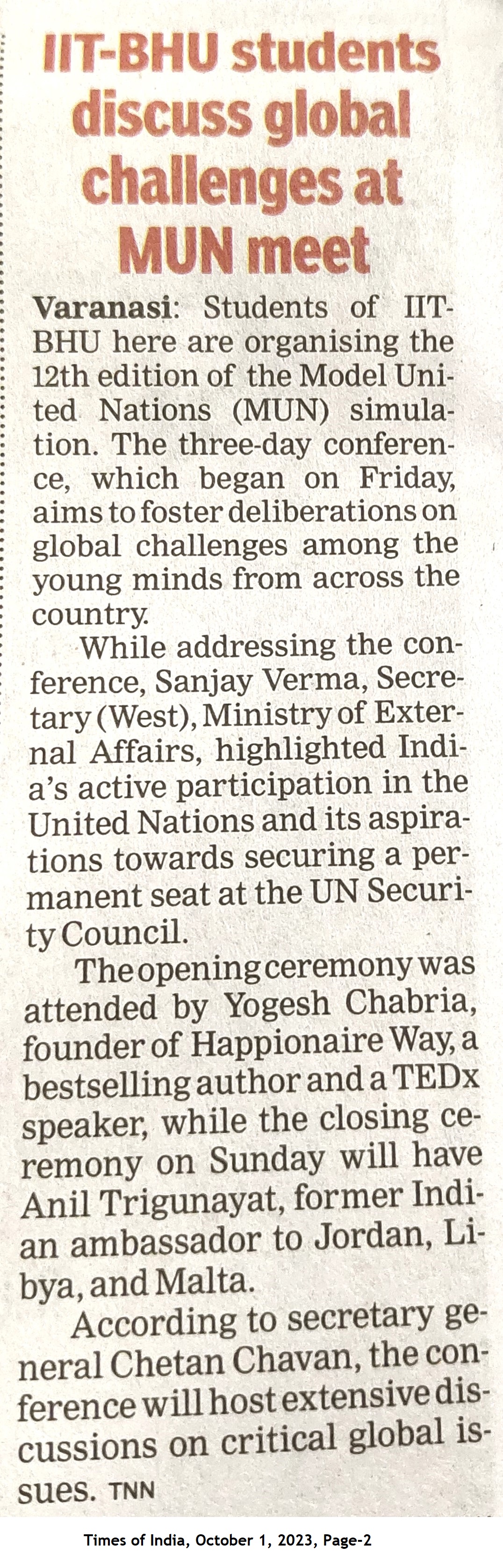 IIT-BHU Students discuss global challenges at MUN Meet