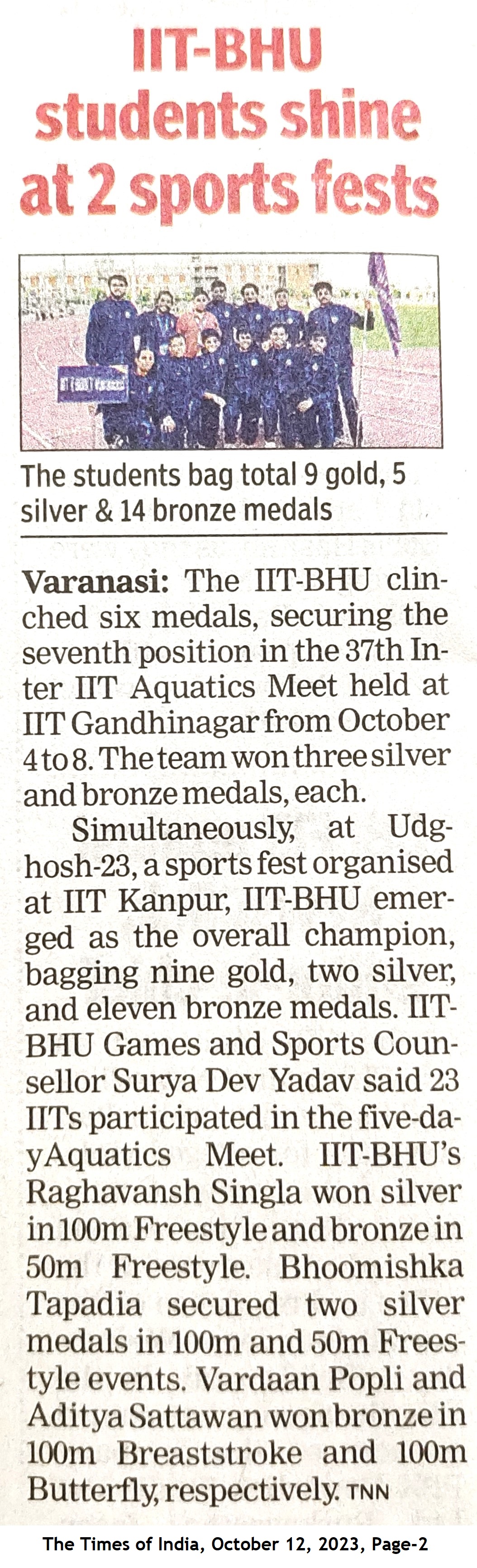 IIT-BHU students shine at 2 sports fests