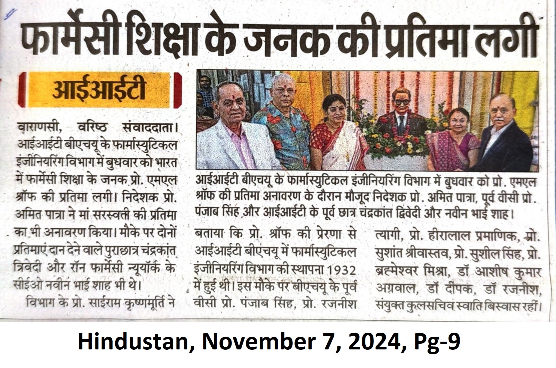 फार्मेसी शिक्षा के जनक की प्रतिमा लगी