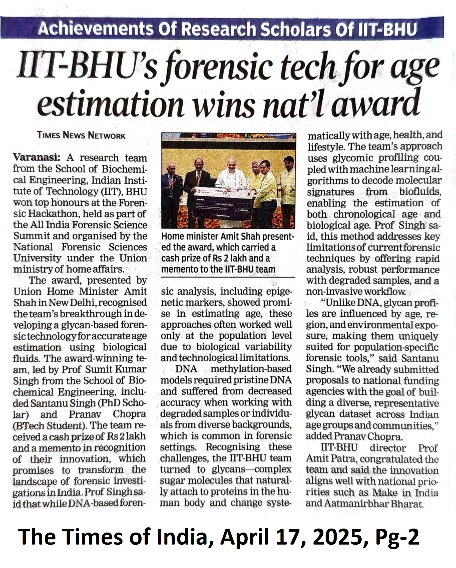 IIT(BHU)'s forensic tech for age estimation wins national award