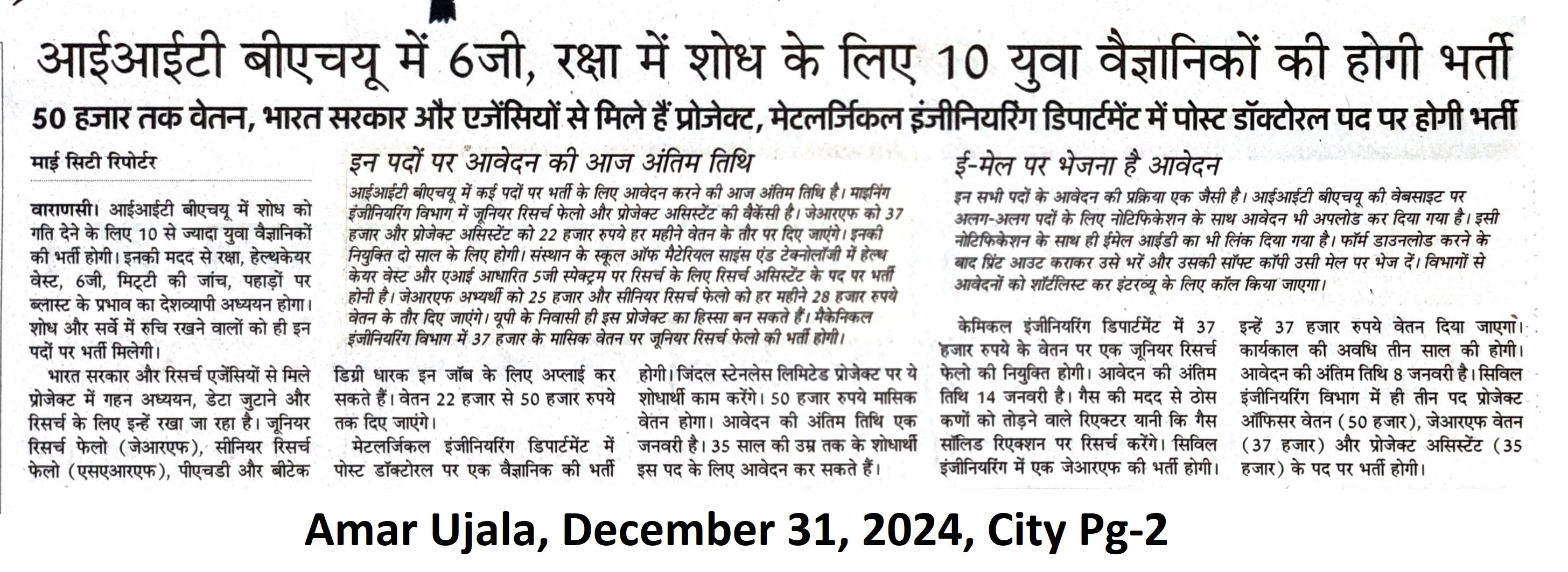 आईआईटी बीएचयू में 6जी, रक्षा में शोध के लिए 10 युवा वैज्ञानिकों की होगी भर्ती