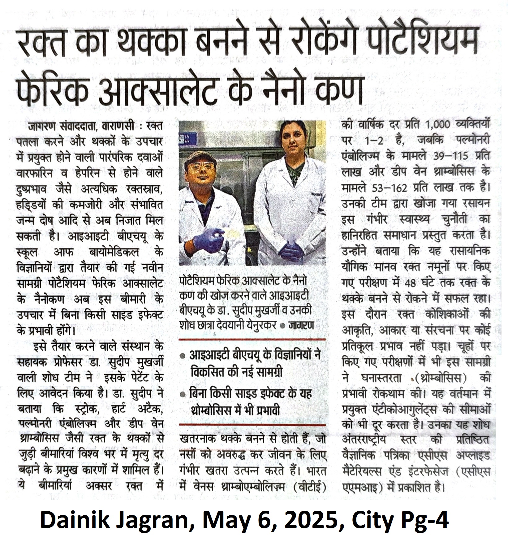 रक्त का थक्का बनने से रोकेंगे पोटैशियम फेरिक ऑक्सालेट के नैनो कण