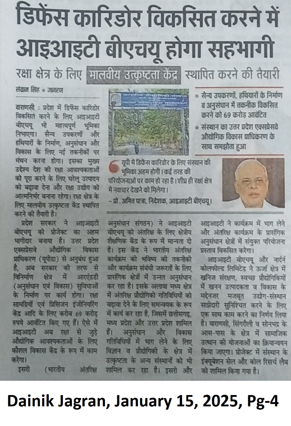 डिफेन्स कॉरिडोर विकसित करने में आईआईटी बीएचयू होगा सहभागी