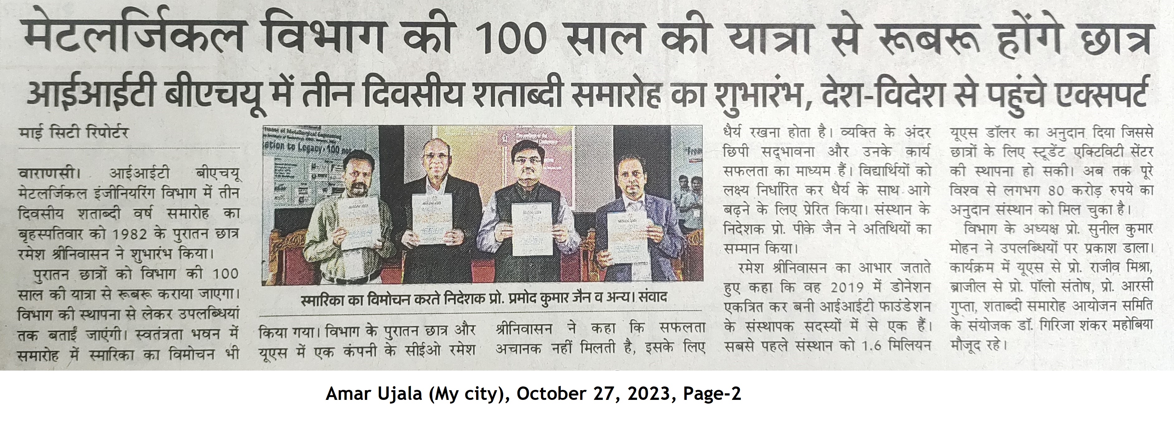 मेटलर्जिकल विभाग की १०० साल की यात्रा से रूबरू होंगे छात्र