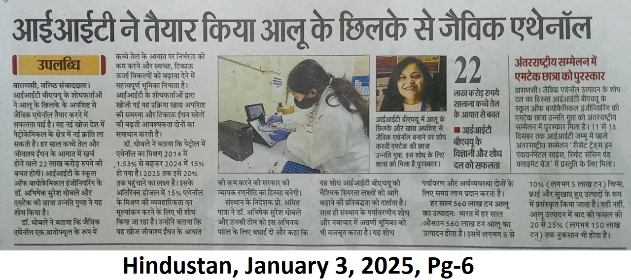 आईआईटी ने तैयार किया आलू के छिलके से जैविक एथेनॉल