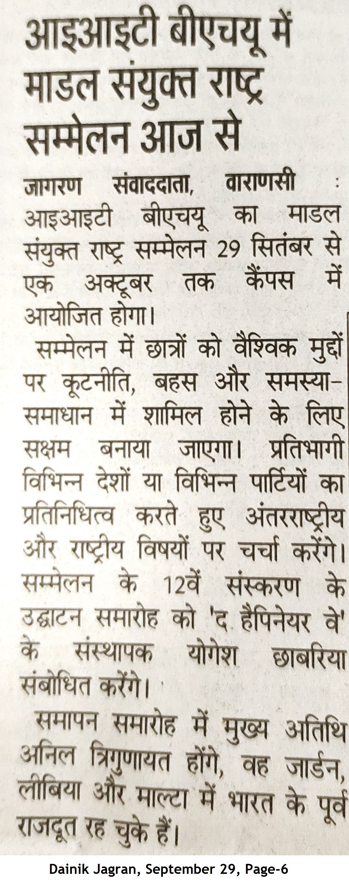 आईआईटी बीएचयू में मॉडल संयुक्त राष्ट्र सम्मलेन आज से