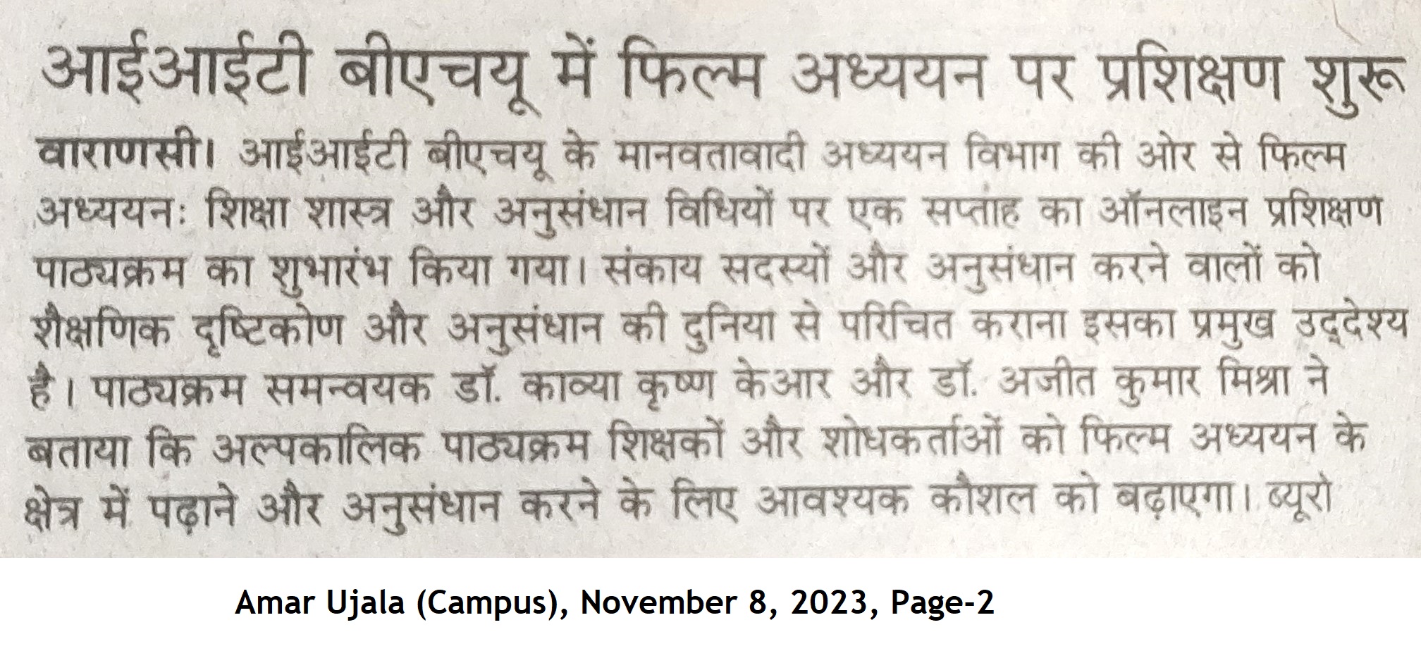 आईआईटी बीएचयू में फिल्म अध्ययन पर प्रशिक्षण शुरू